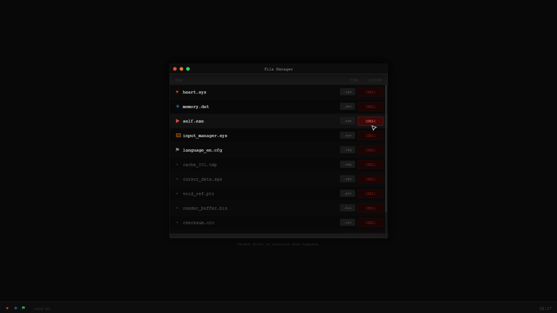 DELETE YOURSELF is a minimalist narrative exploration game set inside a fake operating system interface.